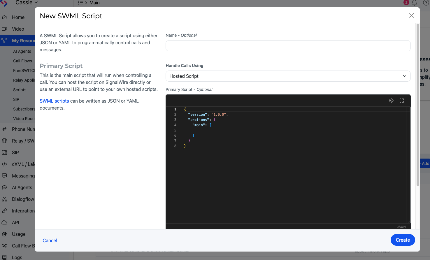 • Default starter content when creating a new SWML Script (no more blank editor)