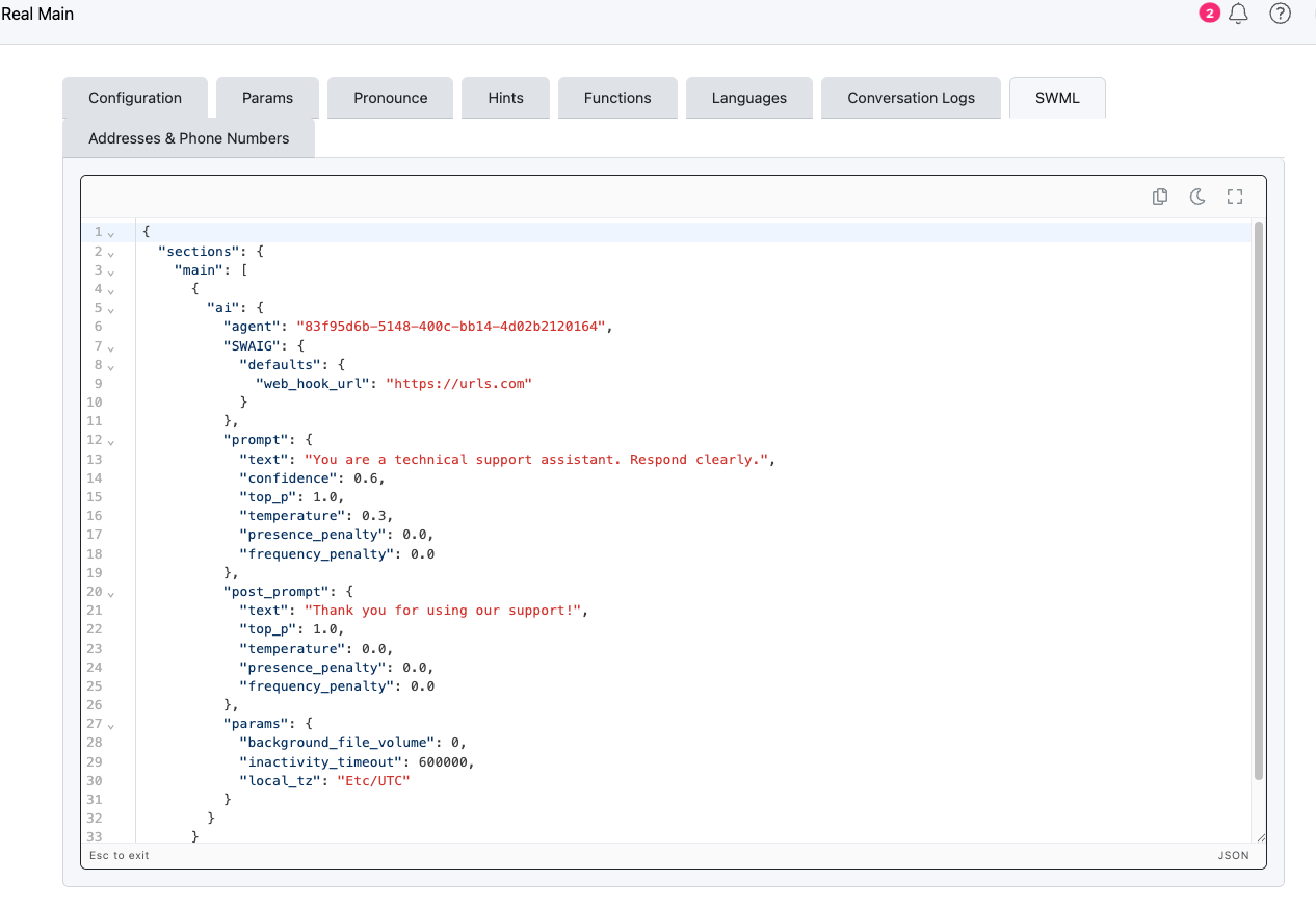 Improved SWML Script Editor We’ve unified the code editor experience across legacy Spaces and the Call Fabric UI. There is now one editor with improved usability and validation features, including:
