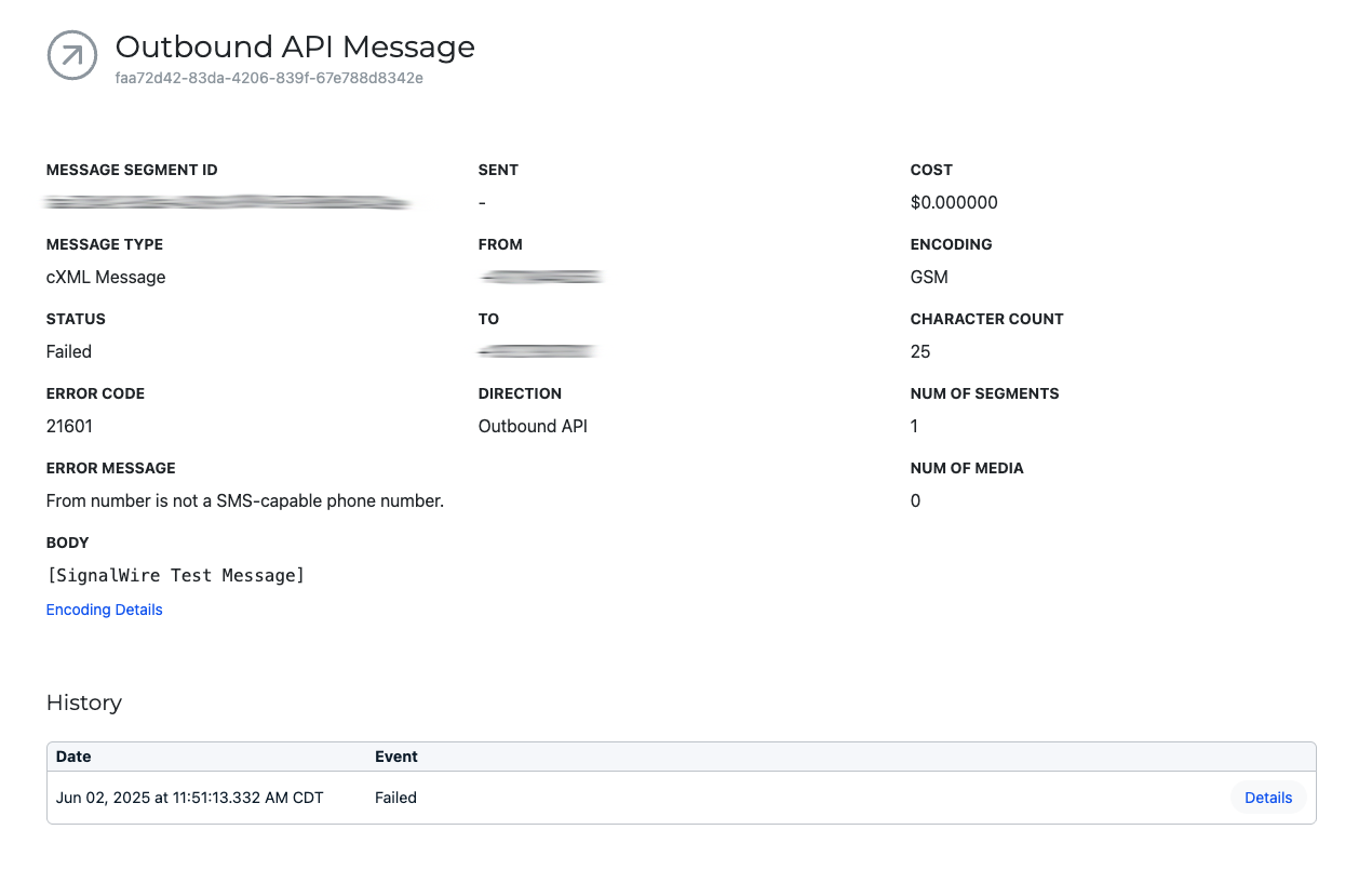 Message logs now display error codes and error messages directly in the UI, giving you full visibility into failed messages without needing to make a separate API call.