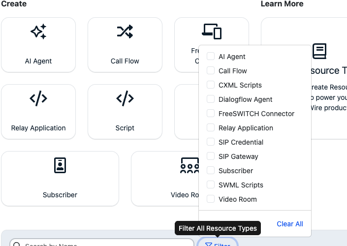 The Resources UI filter for Scripts has been separated into two distinct filters: SWML and CXML.